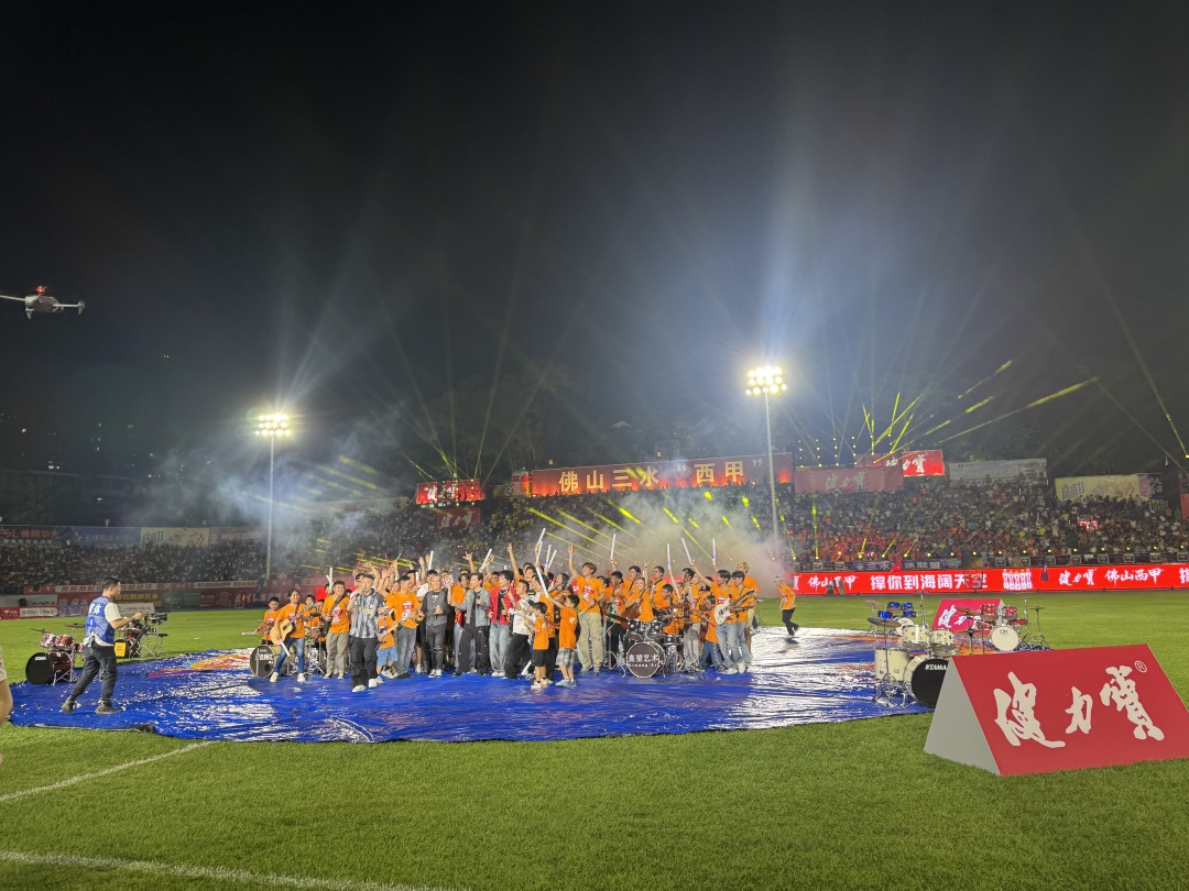 揭幕战中场环节,著名摇滚乐队BEYOND成员叶世荣献唱粤语金曲《不再犹豫》《光辉岁月》《海阔天空》,将现场气氛推向高潮,球场瞬间变成万人演唱会。