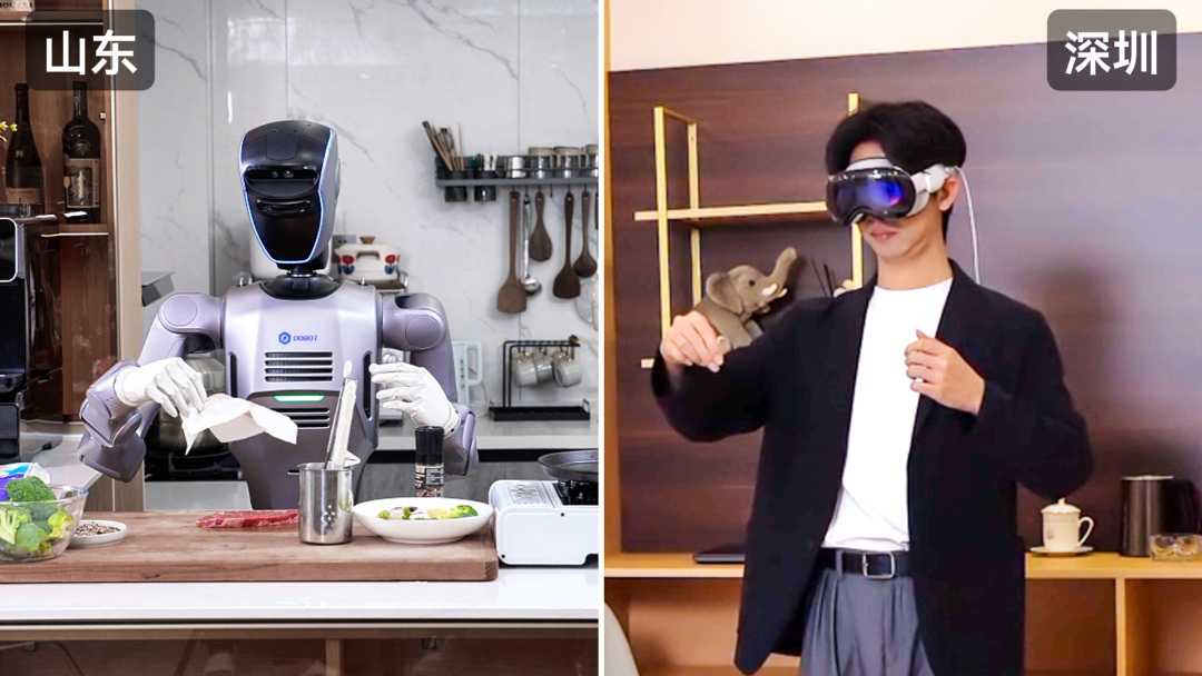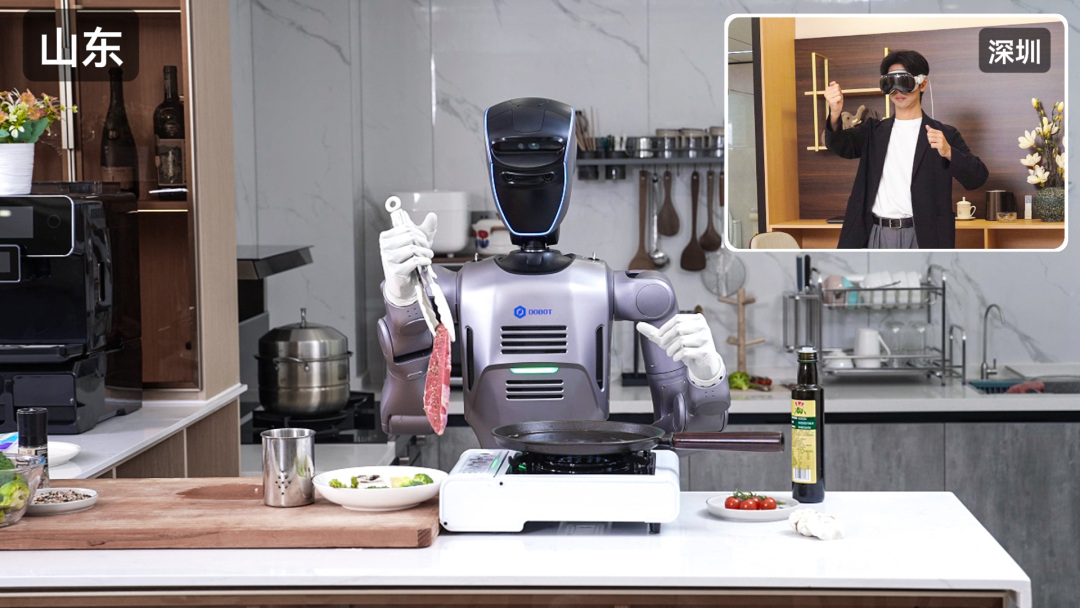 当深圳的工程师戴着VR设备在虚拟空间里轻挥双手,1800公里外的山东某厨房,人形机器人“Atom”正同步举起煎锅——这不是科幻电影的片段,而是越疆机器人最新演示视频中,跨越千里的“隔空煎牛排”实景。一块滋滋作响的牛排,成为科技打破时空壁垒的生动注脚。