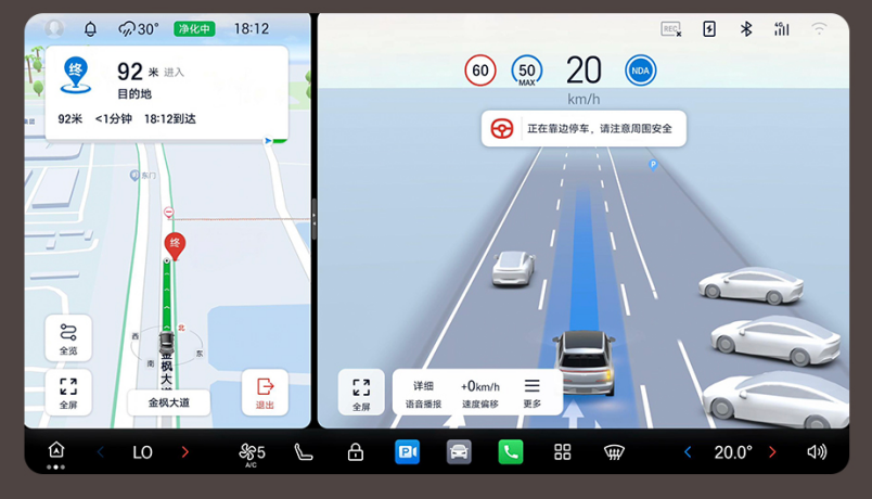 车机导航升级为高德810最新车端引擎,新增巡航红绿灯(红绿灯倒计时、路口来车提醒)、智能播报(陌生路段详细播报,熟路简洁播报)、更丰富的停车场信息(余位情况、到达率等),让出行之路清晰明了。