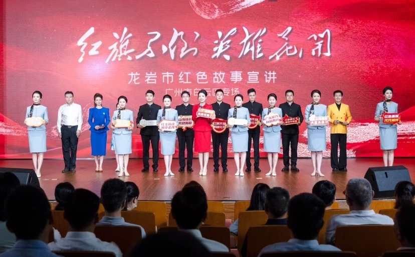 为庆祝中国共产党成立104周年,进一步深化广龙对口合作,传承红色基因,凝聚团结力量,7月4日,由中共龙岩市委、龙岩市人民政府主办,广州市委宣传部、龙岩市委宣传部承办的“红旗不倒 英雄花开”龙岩市红色故事宣讲活动广州市白云区专场,在广州市城市规划展览中心举行。广州市、龙岩市相关领导,白云区直单位、乡镇(街道)干部代表近400人参加活动。