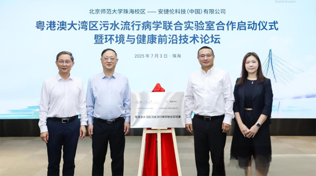 7月3日,北京师范大学珠海校区与安捷伦科技公司合作共建的粤港澳大湾区污水流行病学联合实验室(下称“实验室”)正式揭牌。北京师范大学副校长、珠海校区管委会主任孙红培,中国工程院院士、环境与生态前沿交叉研究院院长、实验室主任余刚,安捷伦科技副总裁兼大中华区业务总经理杨挺等出席揭牌仪式。
