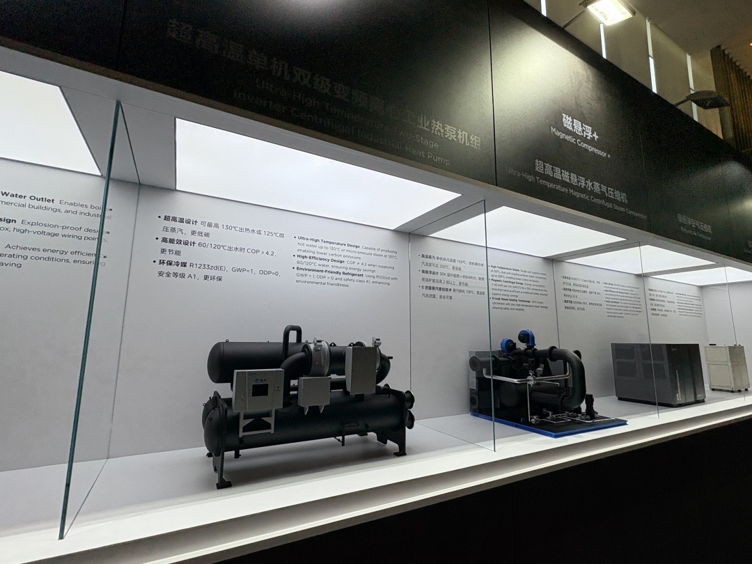 “通过余热回收这一技术,我们可以回收在制造生产过程中产生的废热和余热,然后将它转化为可利用的高温、高热,实现能源利用的提升。”美的楼宇科技水机产品企划负责人刘凯说。