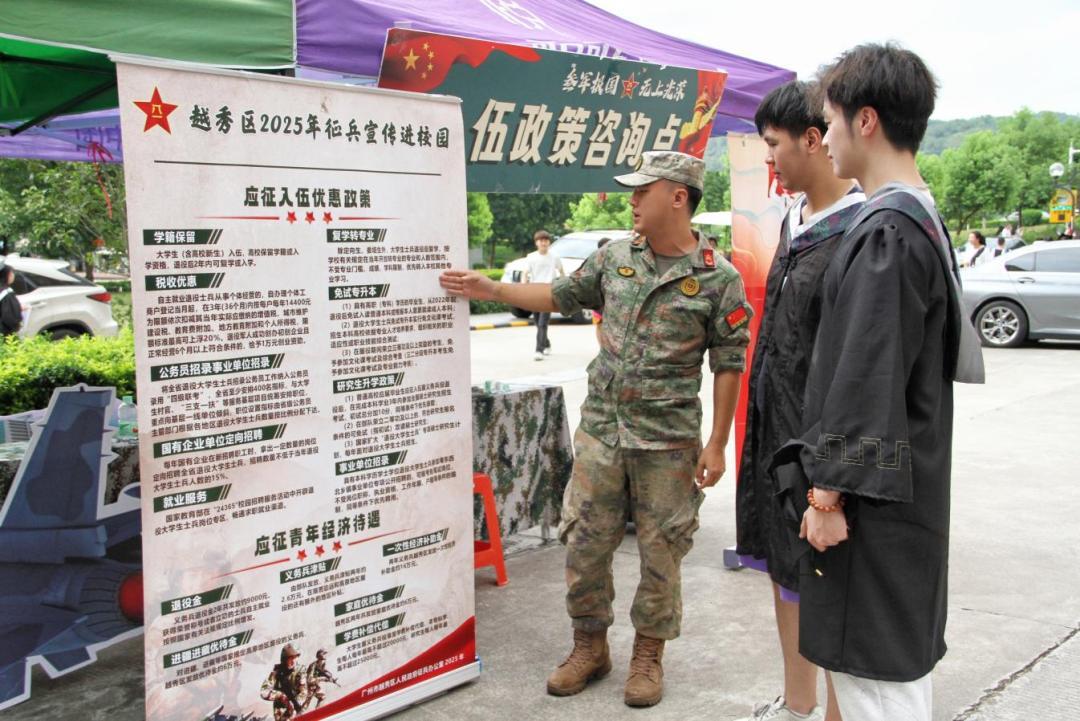 “将征兵宣传与毕业教育深度融合,既为青年学子拓展了人生舞台,也为强军事业注入新鲜血液。”越秀区征兵办负责人介绍,今年以来,该区联合辖区高校建立“一站式”征兵服务站,通过提前摸底、精准动员、跟踪服务,形成“入伍—服役—退役”全周期保障链条,为征兵宣传注入了务实效能与时代活力。