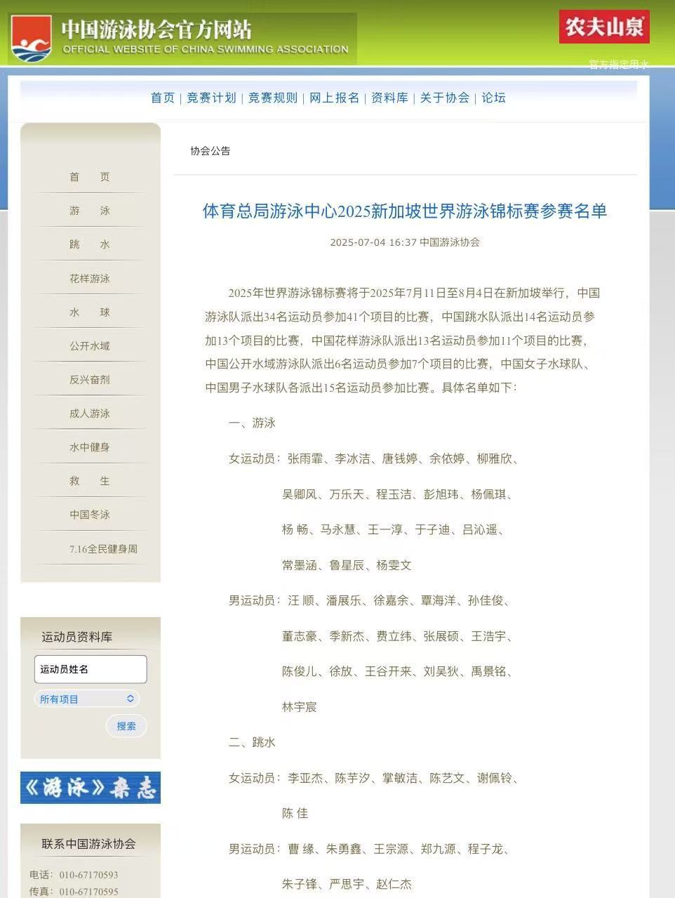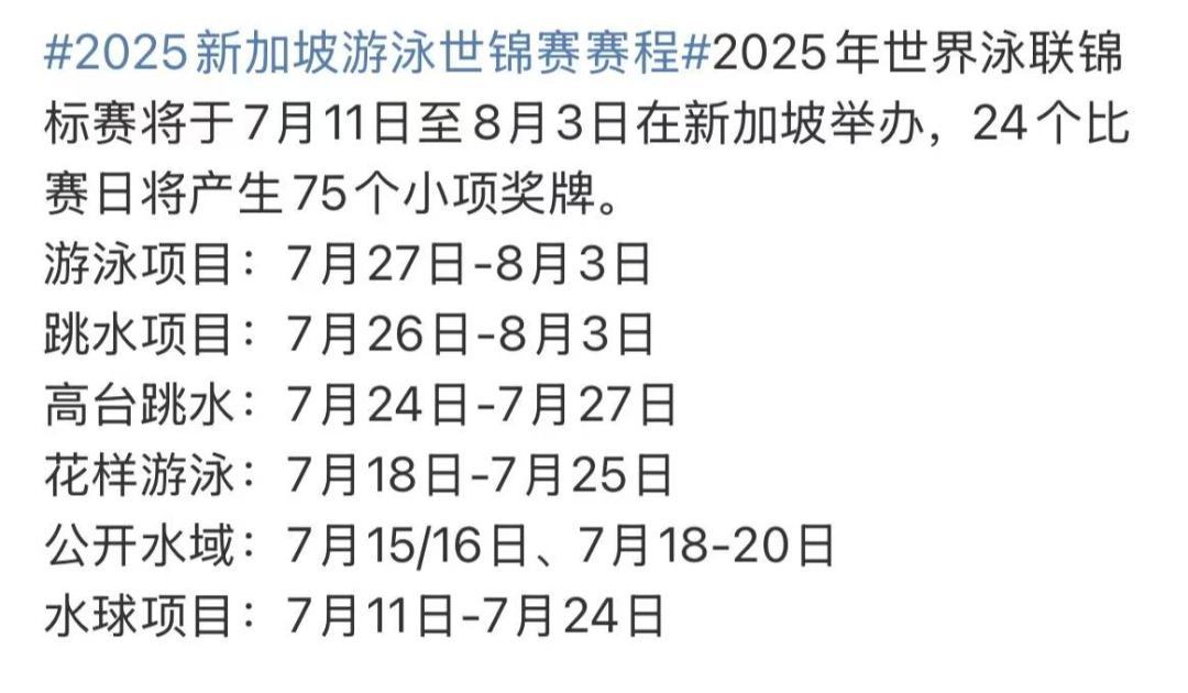 中国队2025年新加坡游泳世锦赛名单
