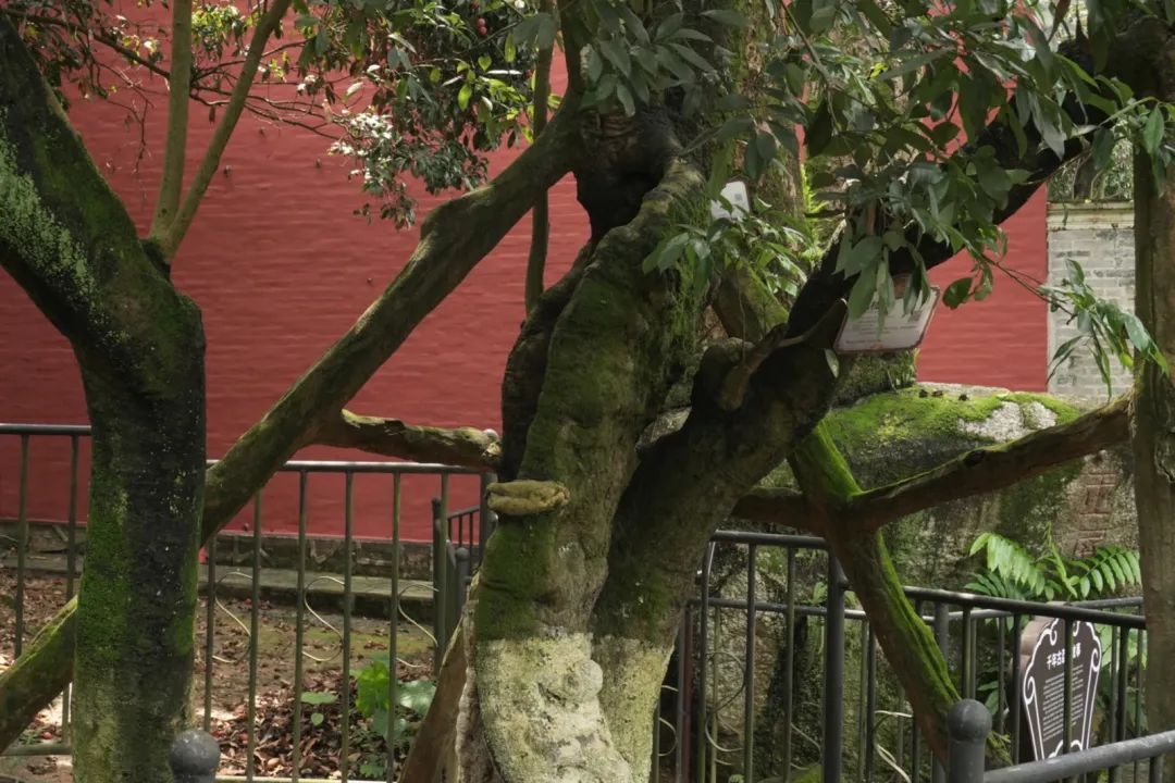 如今,千年古荔不仅有专门的农户打理,还有书院内的管理团队日常巡护,几台摄像监控设备全天候监管“守护”。2021年6月来到玉喦书院的钟楚君告诉记者,书院内现有木棉、香樟等19棵挂牌古树。钟楚君和团队的3名同事,每天都要来古荔枝树下巡查好几遍,古树的变化均要登记在册。