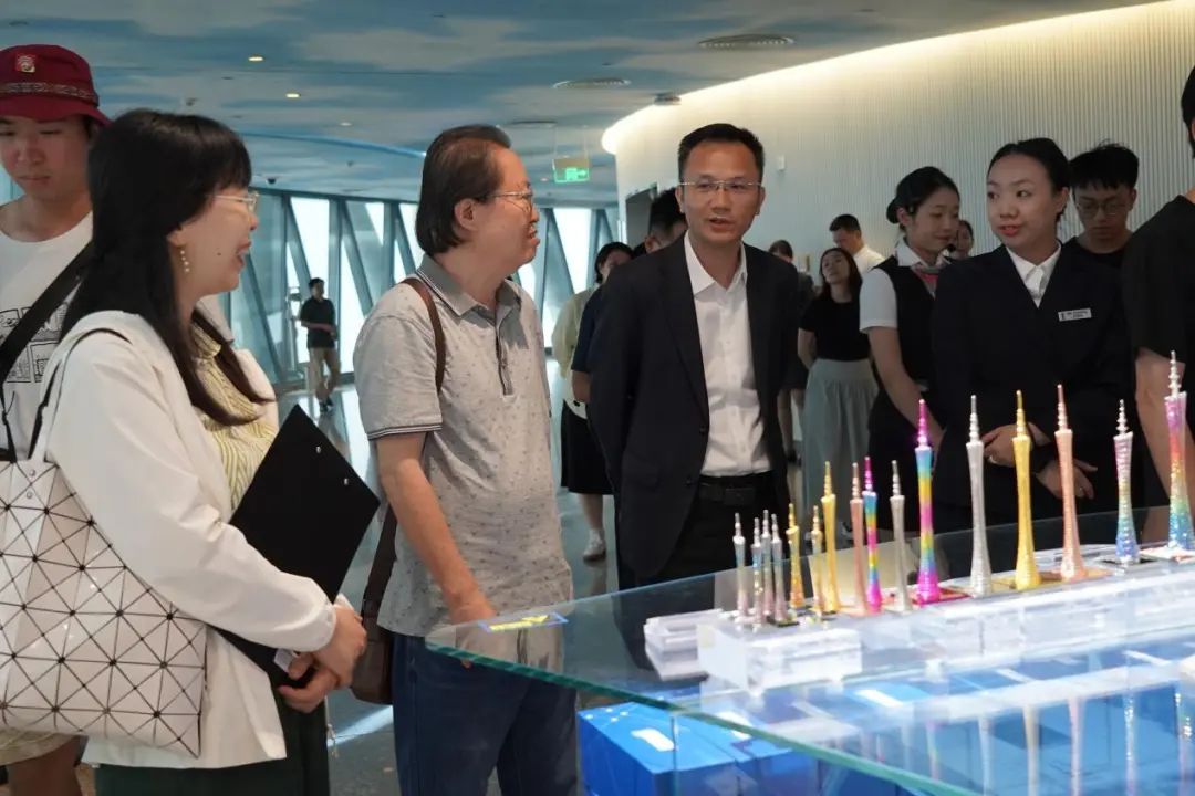 在广州塔内,评审组成员先后参观了非遗展、旅游纪念品商店等,丰富多样的文创产品令人目不暇接。文创领域已成功开发广州塔酒、广州塔水等产品,未来还有望联合本土文化IP推出联名系列,进一步丰富旅游文化内涵。