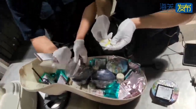当日,一辆跨境客车从皇岗口岸客运车道进境,经过海关监管区时,未向海关申报。海关关员开展查验时,在该车第三排座椅位置发现一辆重量异常的扭扭车,遂将该辆扭扭车进行机检并发现其图像异常。海关关员将扭扭车的外壳进行拆卸,发现内部藏匿有动漫徽章、游戏光碟若干。