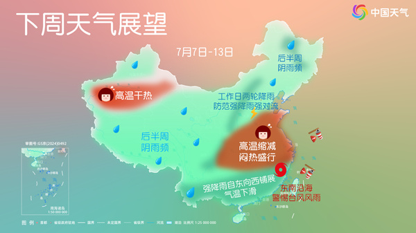 ②今起三天,台湾、浙江、福建部分地区将有台风雨。同时受“丹娜丝”残余环流影响,9至11日江南、华南或自东向西出现较强降雨。