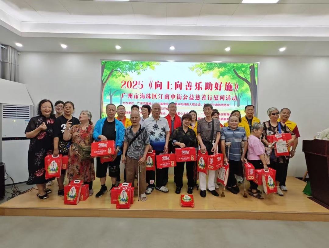 7月2日上午,海珠区江南中街党群服务中心(晓港公园)内欢声笑语不断,30余位残疾长者与爱心人士、志愿者齐聚一堂,共同参与2025“向上向善乐助好施”公益慈善行慰问活动。赵广军生命热线协会联合广州市残疾人福利基金会、江南中街残疾人联合会以及其他爱心单位,为100户残障人士家庭、独居长者送去夏日的关怀与温暖。