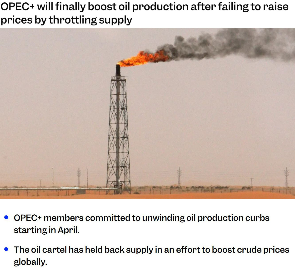 2025年3月,八国决定自4月1日起逐步增加石油产量。