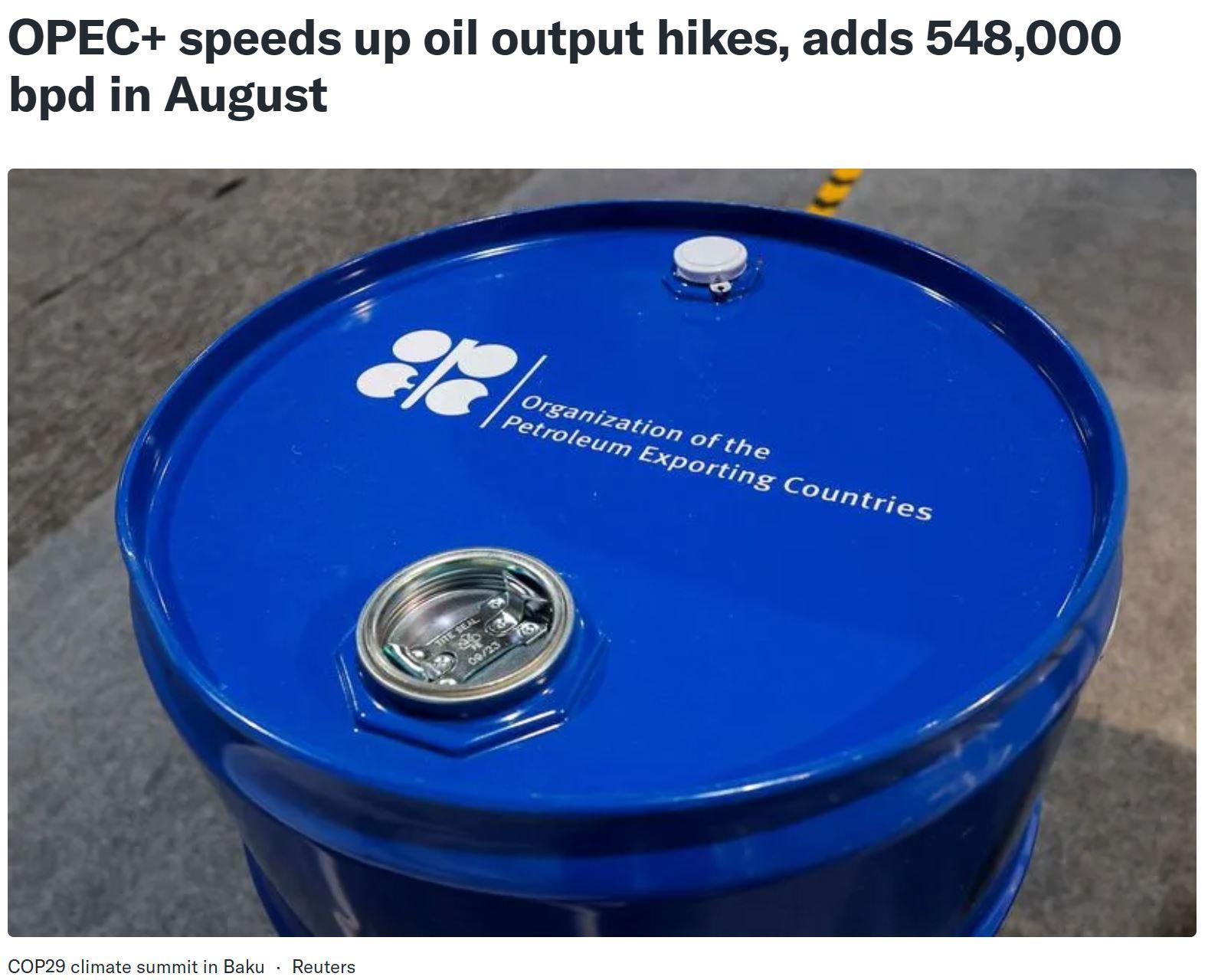 外界普遍认为,部分成员国此前产量高于配额,引发部分坚持履约国家的不满,也是推动本次统一增产的重要动因。