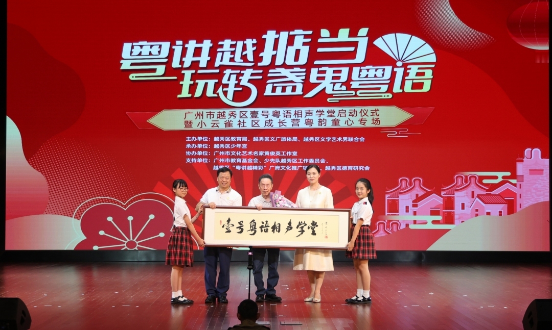 7月5日晚,粤港澳大湾区首个系统化、权威性的粤语相声非遗公益传承平台——广州越秀“壹号粤语相声学堂”正式启动。粤语相声泰斗黄俊英携工作室团队倾情助阵广府文化薪火相传。该项目以粤语相声非遗传承为载体,深化青少年思政教育,厚植爱党爱国爱家乡情怀,培养新时代好少年。“粤讲越掂当·玩转盏鬼粤语——小云雀社区成长营粤韵童心公益专场”当晚在越秀区少年宫小云雀剧院壹号舞台精彩上演。