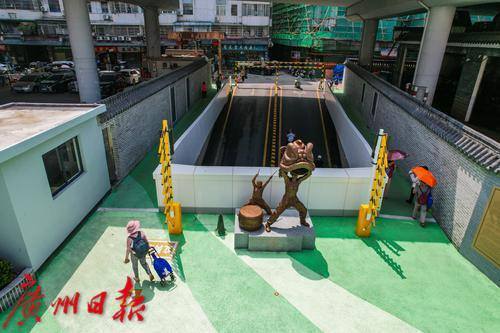 焕然一新的平安隧道上方,新落成一座以“父子醒狮”为核心意象的全铜雕塑《普天同庆》。