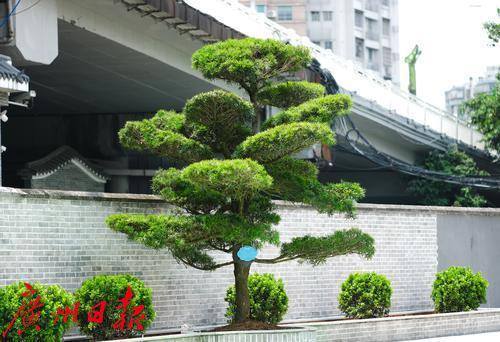 焕然一新的平安隧道上方旁边位置种上了一颗罗汉松。