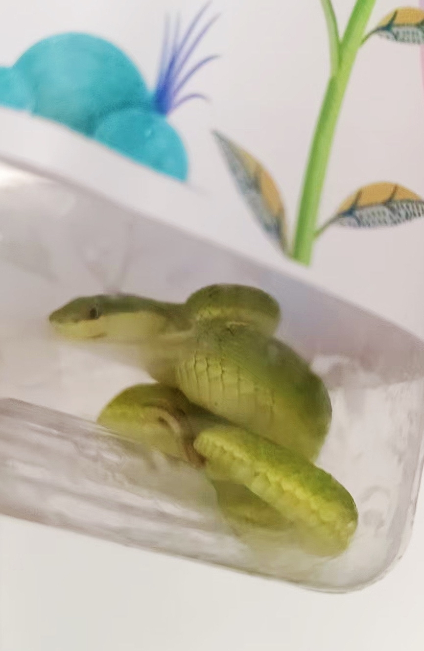 7月1日凌晨,小陈在工厂值夜班时,发现一条通体碧绿的蛇从角落里窜出。出于好奇,他未采取防护措施便下意识徒手抓捕,就在小陈手指刚触碰到蛇身的瞬间,小蛇猛地回头,毒牙精准地刺进了他左手中指的指头,手指很快肿如萝卜。他忍着痛,在闻讯赶来的工友帮助下,眼疾手快地用工具把这条“闯祸”的蛇给控制住,小心翼翼地装进了手边的空矿泉水瓶里,带到了医院。