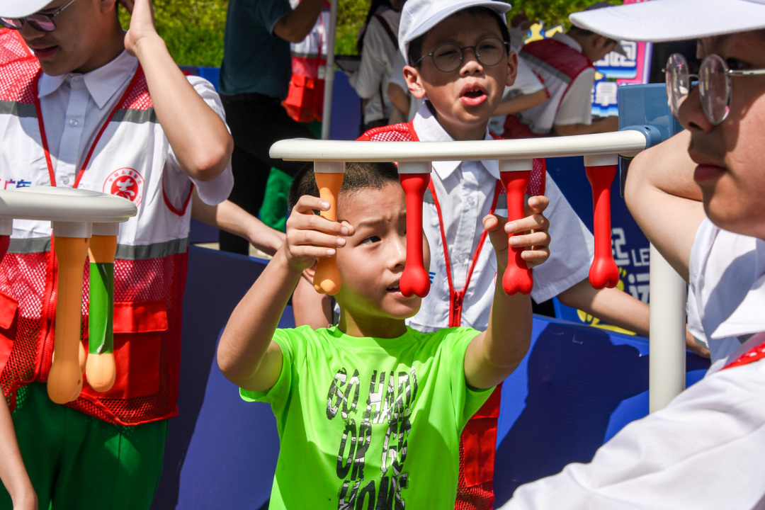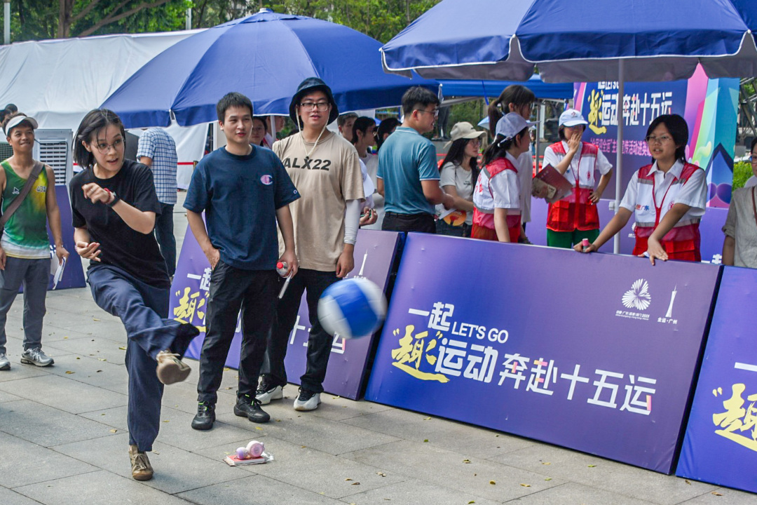 广场上,“红色市集”的鲜红门楣格外吸引眼球,《新青年》笔记本、非遗漆扇、AR明信片等红色文创琳琅满目。在“全运互动区”,吉祥物互动打卡、酷跑运动、足球九宫格等互动游戏吸引众多市民参与。