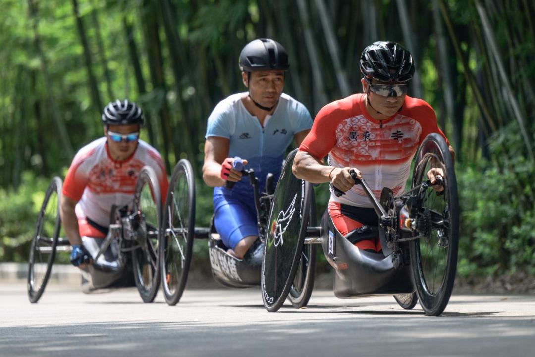 T1级男子25公里大组赛,广东队鲁荣飞、陈健新以1秒之差分获冠、亚军。陈健新是深圳籍运动员,此次赛事他参加了2个小项,取得一金一银的佳绩。“我已经拿了4个残奥会冠军(东京残奥会2个、巴黎残奥会2个)。要感谢有这么强大的队伍,还有教练的付出,才会有这么好的成绩。从2005年开始训练,到今年已经20年,真的不容易!”在接受采访时,陈健新几度哽咽。“我们有个队员摔伤了手,粉碎性骨折,就住了一个星期院,立马要求继续训练。让我真的很感动。她说‘训练那么苦,比赛如果拿不到冠军,我不甘心’。结果她拿了两个冠军,这种精神值得我们所有人学习。”