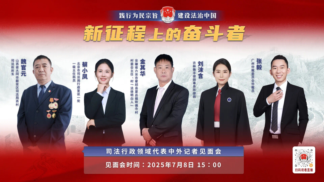 据司法部消息,国务院新闻办公室将于2025年7月8日15时举行“新征程上的奋斗者”中外记者见面会,将邀请5位司法行政领域代表参加,围绕“践行为民宗旨 建设法治中国”的主题与中外记者见面交流。