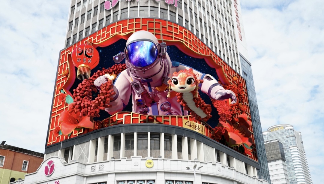 在消费端,“AI+超高清”带来的沉浸式新体验正逐步走进大众生活。在广州北京路商圈,4K花园布设了一块8K裸眼3D大屏,并为其量身定制了一个宇航员IP形象。这种酷炫的体验吸引了大量年轻人驻足参与,不仅本身成为新的消费亮点,也带动了周边商业的人气和消费。