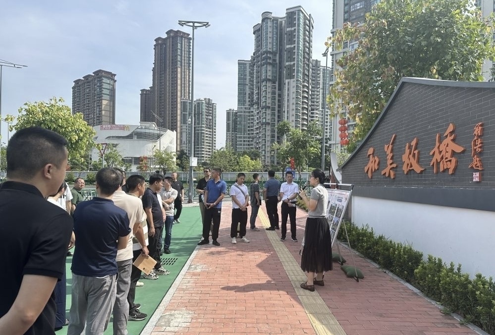 培训班一行依次参观板桥村地铁口风貌带、河涌两岸风光带、文化观光长廊、农房风貌群、板桥公园等地点,听取了板桥村在党建引领、基层治理、人居环境、产业发展、文化赋能等方面的创新做法介绍。近年来,板桥村乡村振兴工作成绩斐然,仅2024年度便荣获“全国城乡社区高质量发展典型案例”“番禺区民生微实事年度案例”等称号,并入选广东省“百千万工程”典型村培育名单。