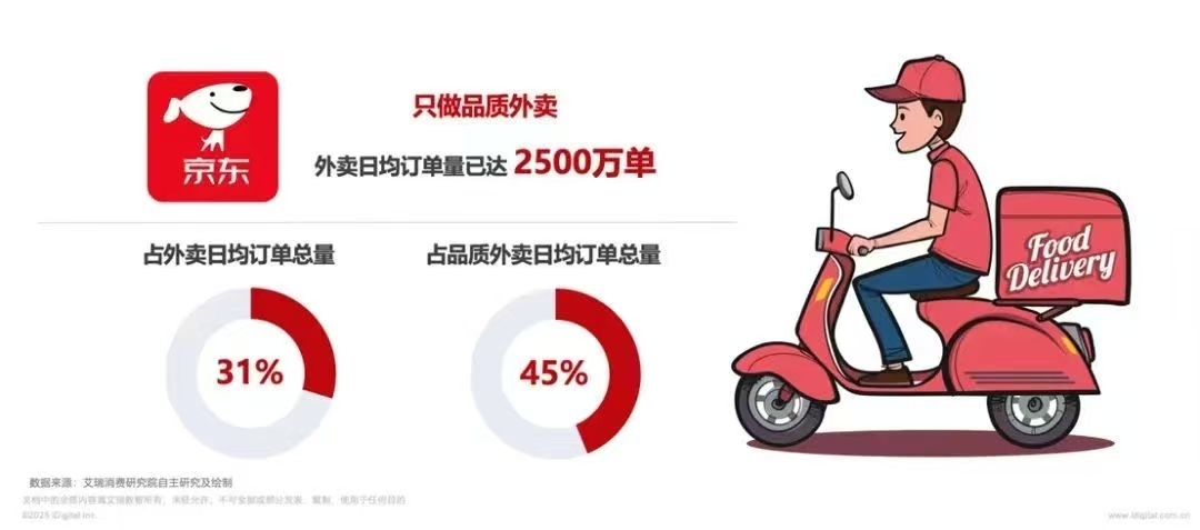 此外,第三方调研机构数据显示,在品质外卖市场中,京东以45%市场份额居行业第一。