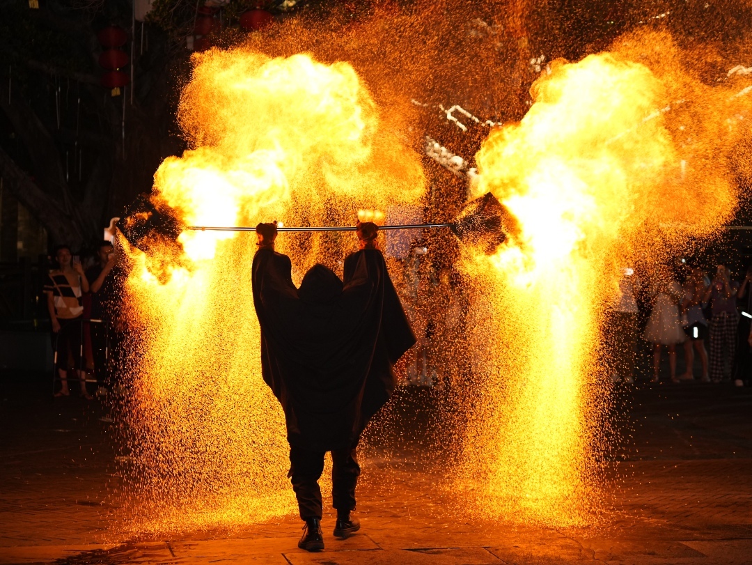 7月5日–8月31日,岭南印象园举办《岭南FUN暑假,日夜都精彩》的暑期活动。在白天,醒狮粤剧、南越王海丝千年沉浸式剧目等让人流连忘返;在夜晚,喷火、火刀、火棍、火壶、打铁花等民俗火艺再次精彩上演。