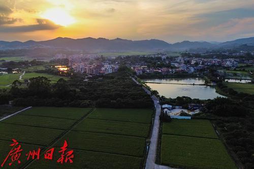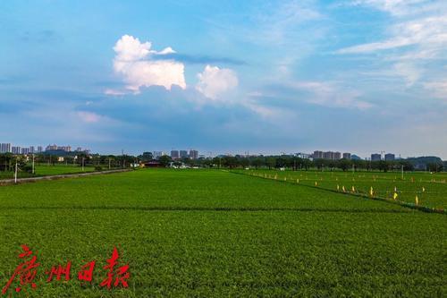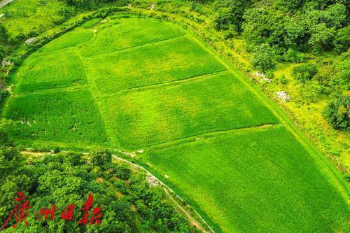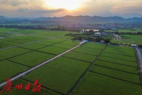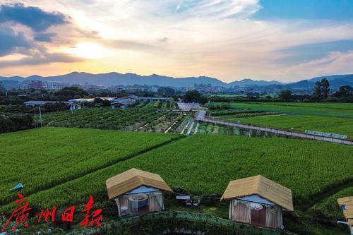 朱村是 “增城丝苗米” 的原产地,白水山上还有着丝苗米的原始田。而在山下,连片的稻田在夏日阳光照耀中,绿得发亮,夏日的风吹过,稻浪层层翻涌,水稻茁壮成长等待秋天的丰收。