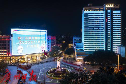 海珠广场大屏幕出现“第十五届全国运动会2025年11月9日广州开幕”字样。