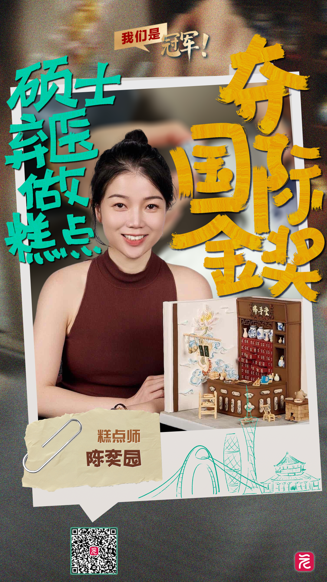 这个广州90后姑娘太牛了,她把中国几千年的医药文明,“装”进了一个蛋糕里。在今年澳大利亚布里斯班国际蛋糕展(ACADA)上,广州90后硕士、糕点师陈奕园用手术刀般的精准手法,做出了拇指般大小的算盘,算盘上的珠子还能用镊子拨动。蛋糕主体“佛山堂”中药柜上14个抽屉可抽拉,这些竟是用翻糖制成的甜蜜糕点。这件以西方糕点为载体,讲述中国中医药故事的作品最终斩获满分金奖。作品获奖后,被岭南中医药博物馆选中,计划将在今年年底展出。几年前,陈奕园的身份还是广州某三甲医院的职工,辞职后,重拾制作蛋糕的手艺,她说每个人的选择不一样,经营好一家蛋糕店也是一门大学问。
