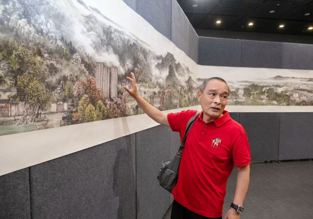 “这是我们12位书画家用了两年时间,走遍大源街的每一个角落,在统一构图的基础上,围绕画作总体思路,协调整体风格,将5个基层治理主题、38处标志性场景融入水墨之中。”广州山水画研究学会执行会长杨毅分享创作经历说,该画作“远看气势磅礴,近看细节精巧,是现代建筑与自然风光有机融合的典范之作,画卷里的人物就达900个之多,大源街产业兴旺、生态宜居的烟火气都藏在画卷里了。”