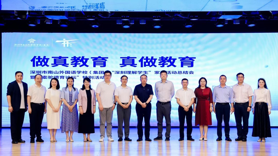 7月8日下午,深圳市南山外国语学校(集团)“深刻理解学生”家访总结会暨“橐驼德育论坛”特别活动在南外(集团)高级中学学术报告厅成功举办。来自南山区教育局的领导、南外集团15所分校的校领导、德育干部、家长代表及媒体朋友齐聚一堂,共同回顾这场跨越寒暑的“教育行走”,解码家校社协同育人的南外实践。