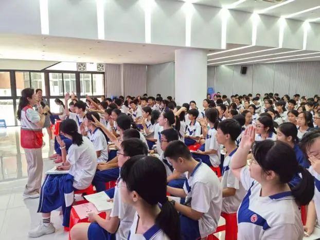 6月27日和6月30日,社会志愿者叶耘、林琳和黄健送课到广州市南武第二实验学校、广州市第四中学津园和康园校区,为初一和初二年级共计1804名师生讲授陈家祠古建筑的历史意义和文化底蕴。叶老师发挥专业特长,以中英文双语讲解“三路三进两庑九厅堂”建筑空间布局和建筑装饰艺术中的“吉祥”文化,课堂妙趣横生。