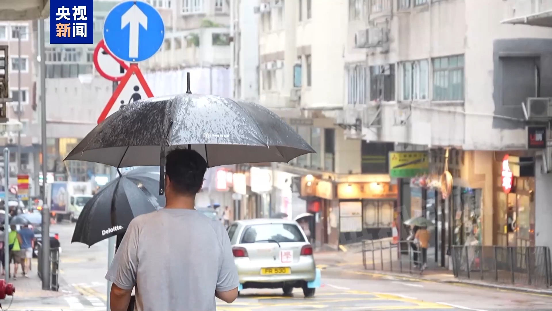 10日中午,香港天文台发布红色暴雨警告信号。总台记者在香港街头感受到了加大的雨势,许多学校也从今日下午开始停课。15时30分,香港天文台改发黄色暴雨警告信号。