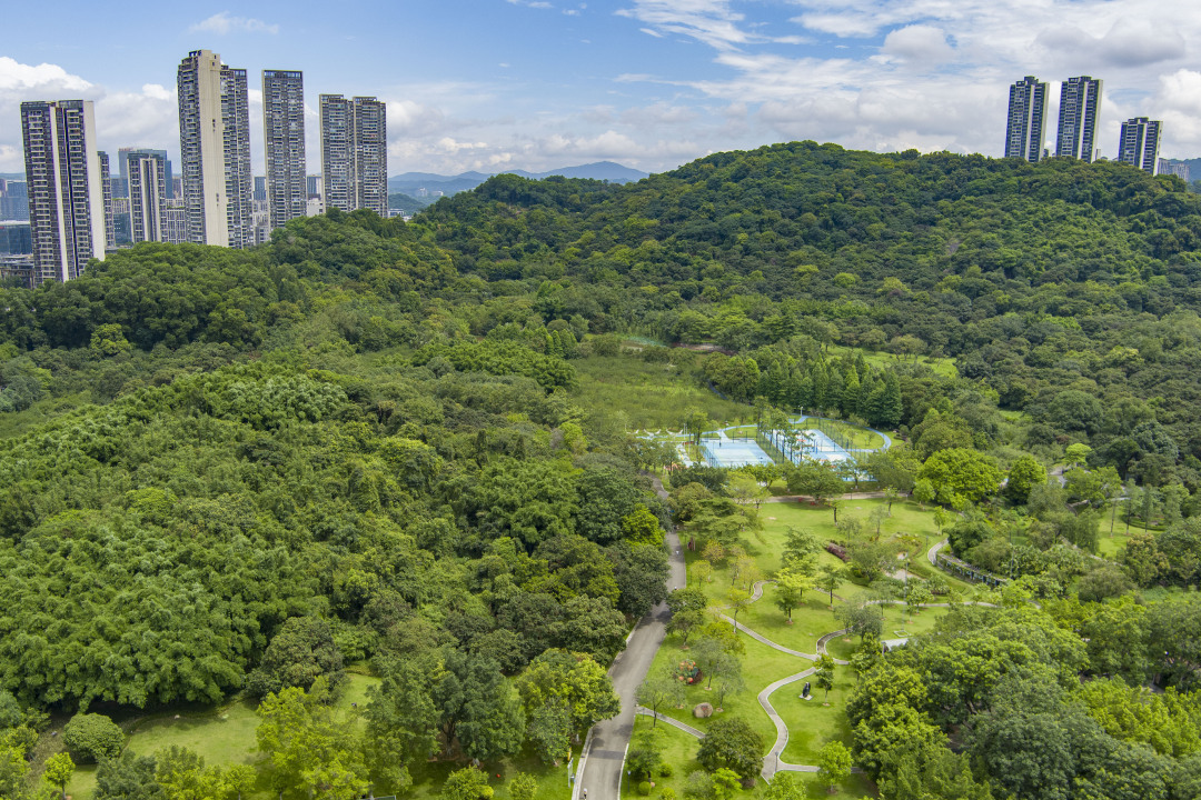 走进创新公园(原名广州义务植树公园),砾石铺就的小径引领脚步,可依次游览古荔韵园、荔香悠园、芳荔翠景等3个主题园区。荔枝古树冠如巨伞、繁密成林,洒下片片清凉绿荫。扫描树干上的“身份证”二维码,还能读到一段段古树故事。
