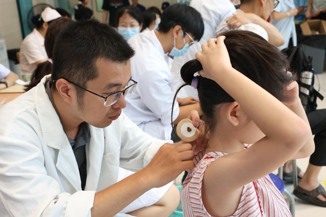 在广州工作的邓女士是“天灸新粉”,她好奇地观察着周围,“广东同事推荐我来的,说我手脚冰凉、肩颈酸痛可能是体寒,让我来贴一下。”贴敷时,医护人员在她后背的脾俞、肾俞穴位精准施贴。她笑着说:“刚贴上凉飕飕的,现在慢慢热起来了!像有股暖流往里钻。”她表示三伏贴“出乎意料地火”,后面还会继续按时来贴全疗程。