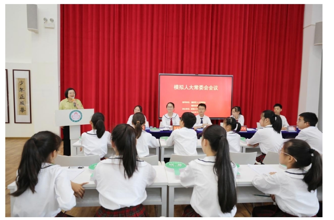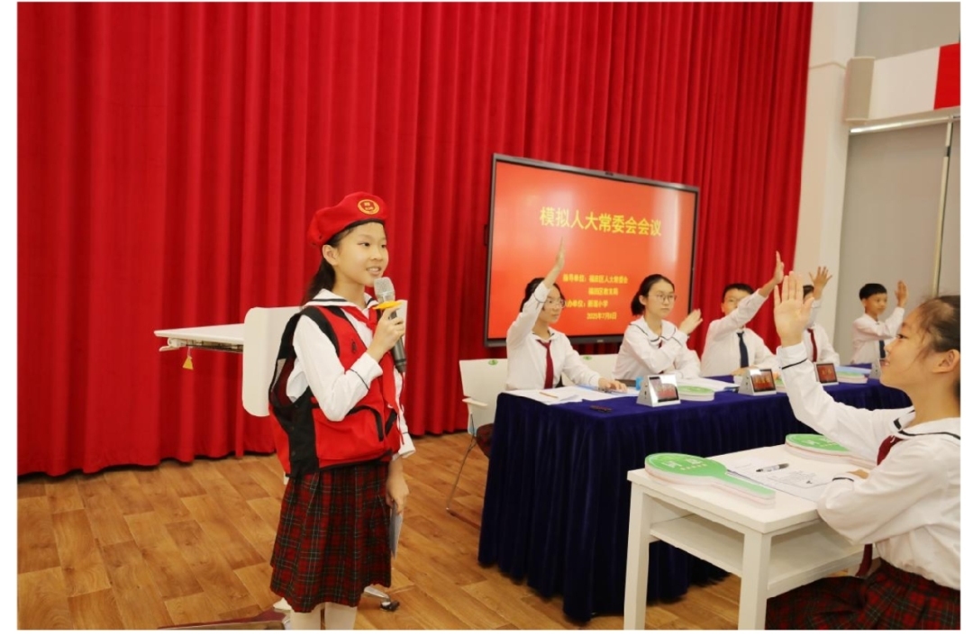 在暑假来临之际,新莲小学聚焦校园应急急救管理主题开展“模拟人大常委会会议”活动,提升学生应急管理能力、生命安全意识,让青少年知晓掌握求助、自救、防范的意识和技能,懂法、知法、守法。
