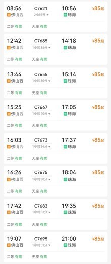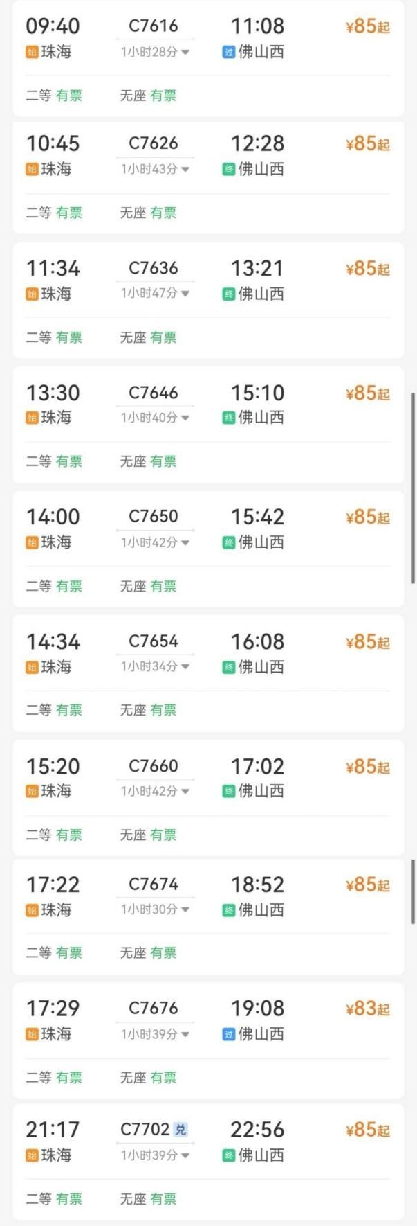 根据调整,增开佛山西至珠海车次包括C7621、C7685、C7655、C7667、C7673、C7675、C7683、C7695次共计8趟动车组列车;增开珠海至佛山西车次包括C7616、C7626、C7636、C7646、C7650、C7654、C7660、C7674、C7676、C7702次共计10趟动车组列车。