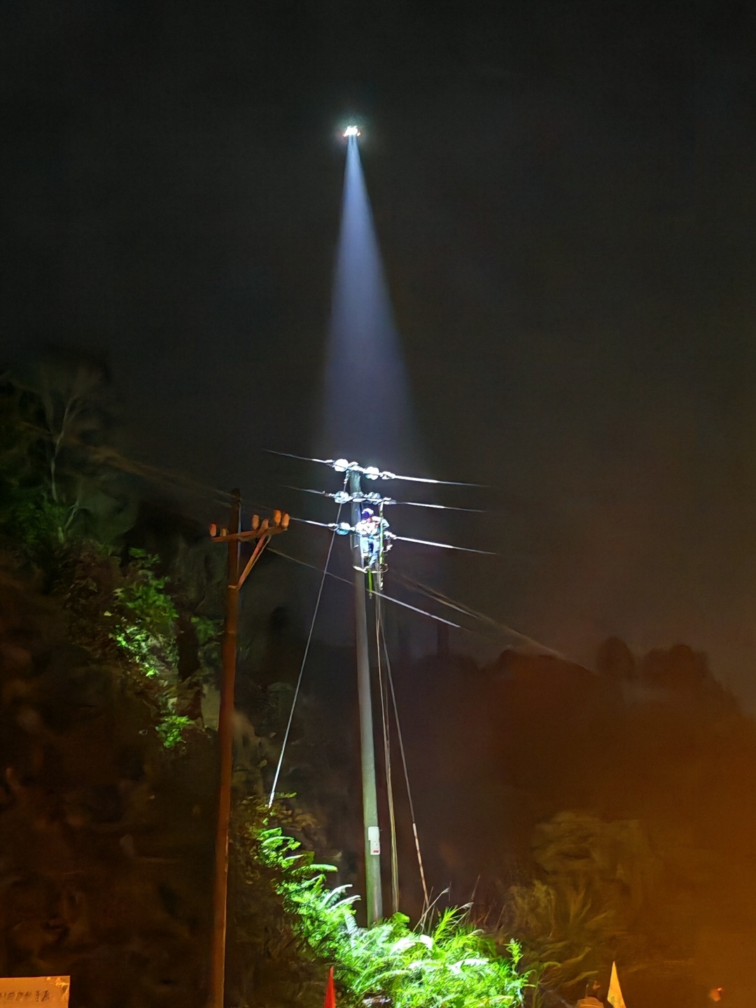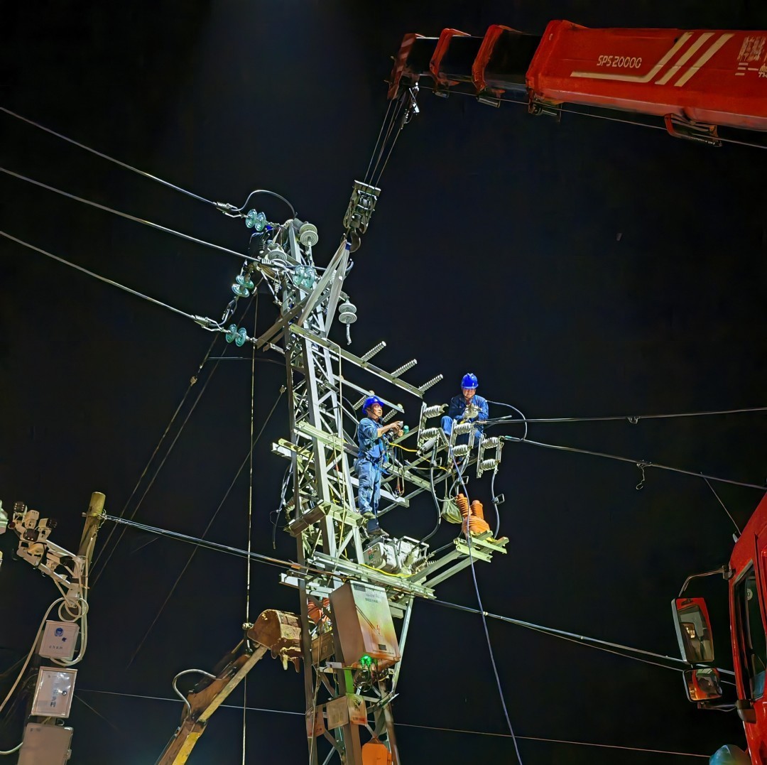 南方电网广东揭阳惠来供电局营配指挥中心技术骨干卢鸿彬带领抢修人员赶赴现场,迅速制定抢修方案,同时调派应急发电车进行临时供电。“尽快恢复塔基,重新立杆架线。”然而,由于树木倒塌、山路泥泞,大型机械无法进入,塔基修复困难重重,为加快抢修进度,指挥中心使用无人机照明辅助夜间抢修。经过彻夜奋战,线路于7月10日凌晨全面恢复送电。