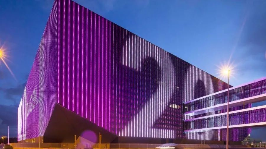 据了解,该电竞馆总占地面积约4000平方米,总建筑面积约8000平方米,围绕“数字化云山珠水”的设计概念主题,规划建设了一栋5层、赛事标准层面积2000平方米的国家B级电竞赛事场馆。场馆的外立面设计体现了白云湖数字科技城的特色,将抽象化的山形云形融入建筑形态中,结合穿孔铝板与立面灯光投影,将城市影像在立面重现,体现数字化城市画卷概念。