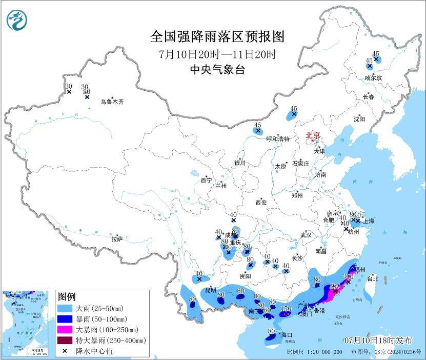预计,7月10日20时至11日20时: