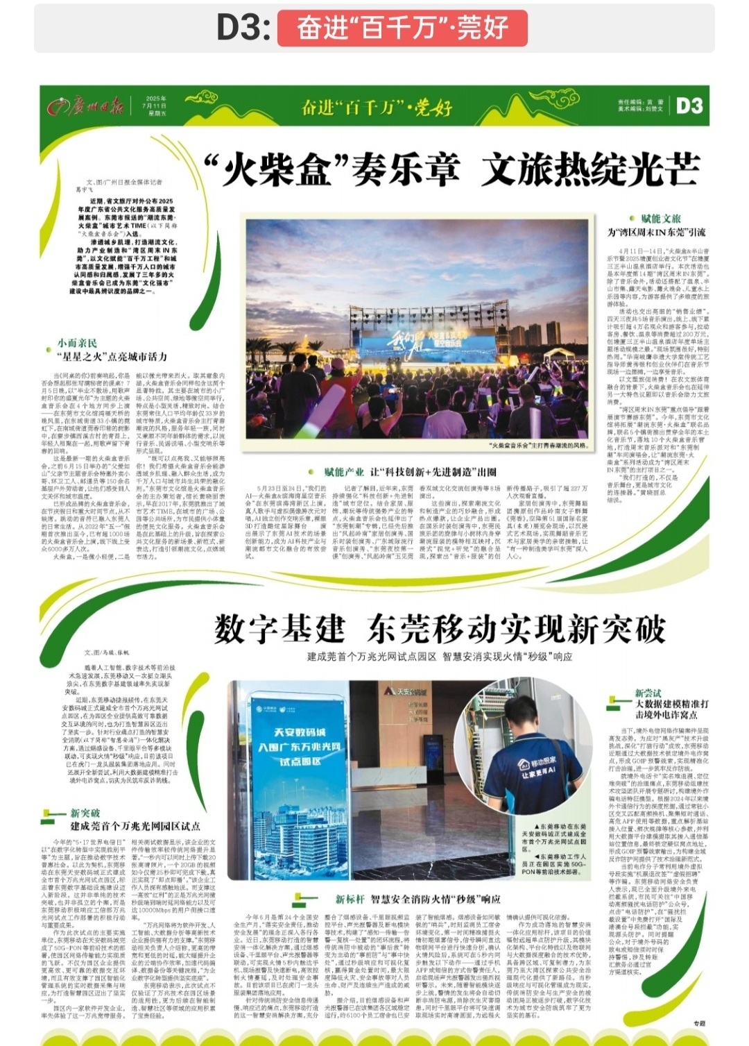 5月23日至24日,“我们的AI—火柴盒&滨海湾星空音乐会”在东莞滨海湾新区上演。真人歌手与虚拟偶像跨次元对唱,AI独立创作交响乐章,裸眼3D打造酷炫星际舞台……演出展示了东莞AI技术的场景创新能力,成为AI科技产业与潮流都市文化融合的有效尝试。