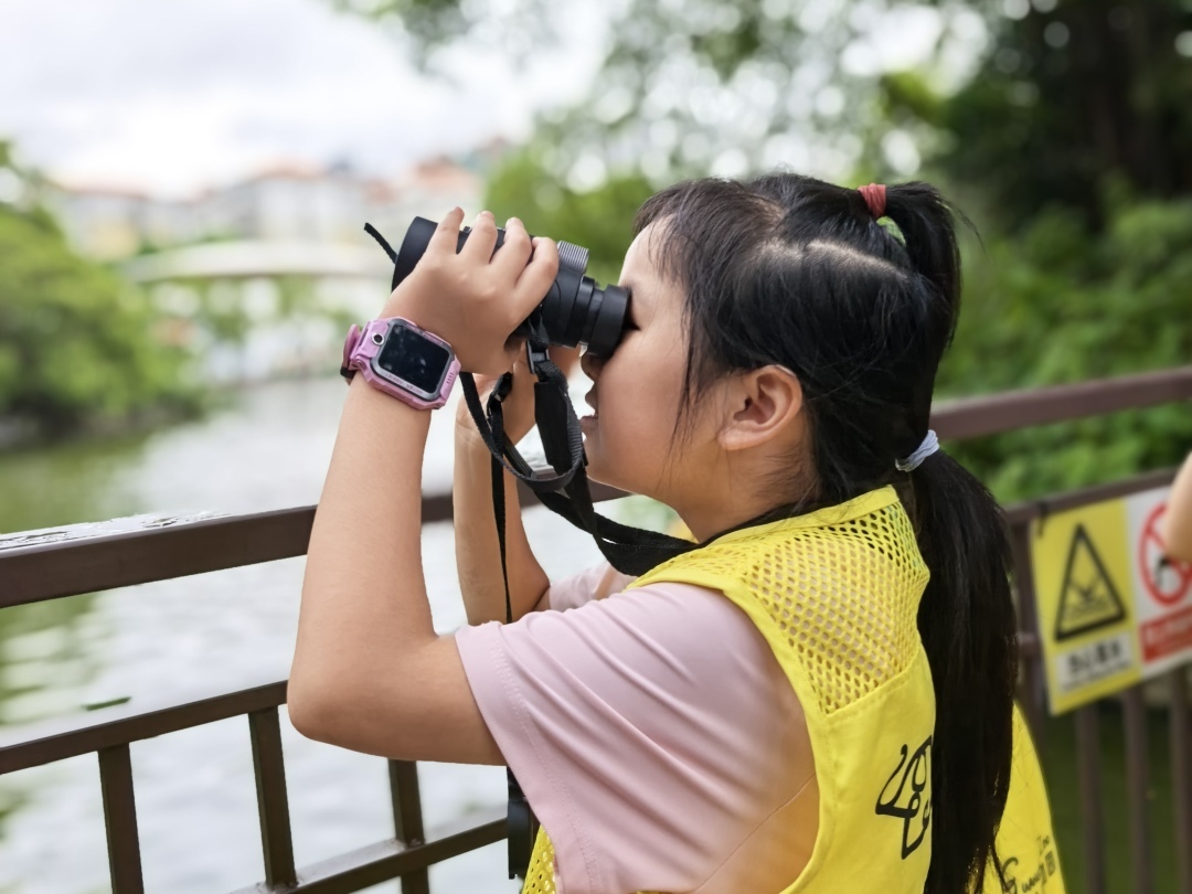 次日清晨,成员们在海底晨光中苏醒,在海洋馆品尝了美味的早餐后,伴随着清脆的鸟鸣步行至湖边。他们听着导师的专业讲解,手持望远镜观察斑头雁、鹈鹕、红耳鹎、乌鸫等鸟类,从振翅、游水、觅食行为中学习生态习性、辨识特征等知识,并制作小鸟手工画,留存下美好记忆。