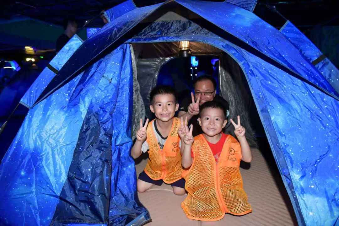 进入海洋馆,在专业老师的带领和讲解下,亲子家庭跟随老师的步伐走进神秘、梦幻的海底世界,在蔚蓝色的光影照映下,近距离观察鲨鱼、水母等海洋生物的曼妙身姿,在巨大的观景窗前搭起帐篷。人们仿佛置身于湛蓝的海水中,与海水中的鱼儿一起摇曳,怀着对蔚蓝的大海的无限遐想和向往之情,与鱼群、水母等海洋生物共眠。