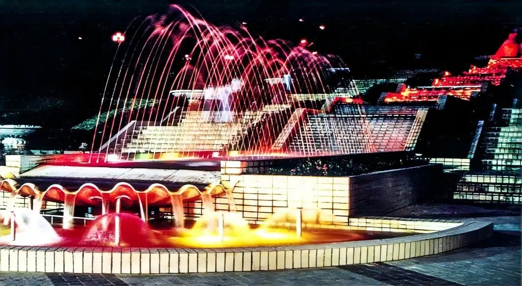 云台花园飞瀑流彩中轴梯级叠水夜景