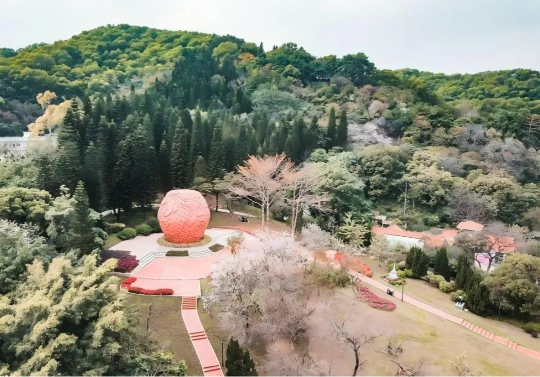 谊园则在轴线的左侧山头——以球形的红砂岩雕塑为景观构图中心,20多个国家(友好城市)赠送的各种纪念品安置在球形雕塑的四周,与周边的环境融为一体。