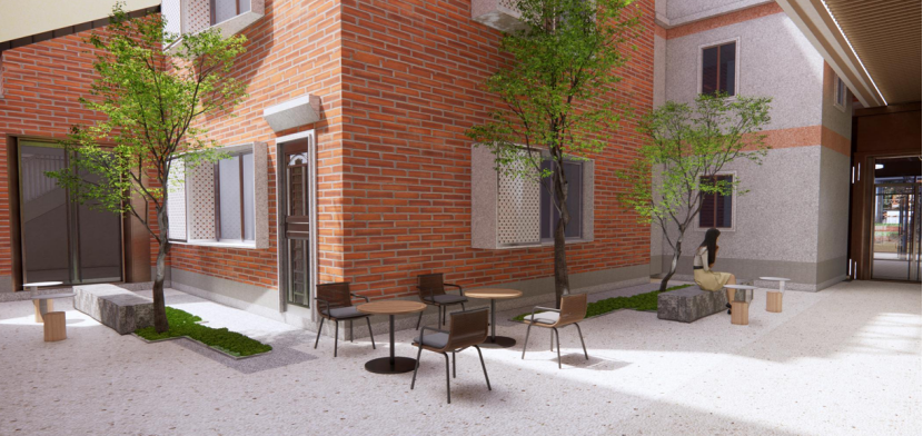 以规划引领破解难题。通过系统梳理地块内各产权权属情况,将零散的多幢房屋统一规划,增添红砖灰瓦、天井庭院等岭南风貌,实现“红线零扩张、功能大提升”。面对项目地块与规划路网冲突问题,结合项目实际条件,因地制宜采取首层架空及周边建筑退缩等方式,在满足道路退让的同时,形成社区交流小广场,为周边群众提供公共活动空间。