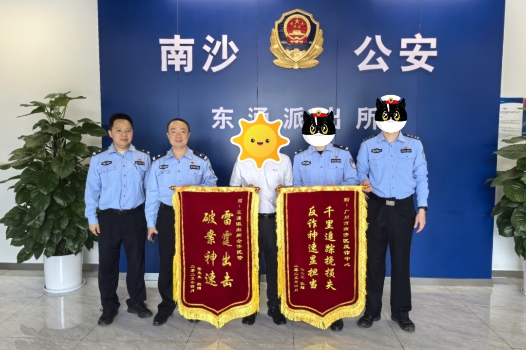 “谢谢你们!这些都是准备给员工发的工资,还有给供应商的货款……”近日,广州南沙市民陈先生带着2面锦旗来到东涌派出所,对南沙反诈中心及东涌派出所全力为其追回被骗资金表示感谢。