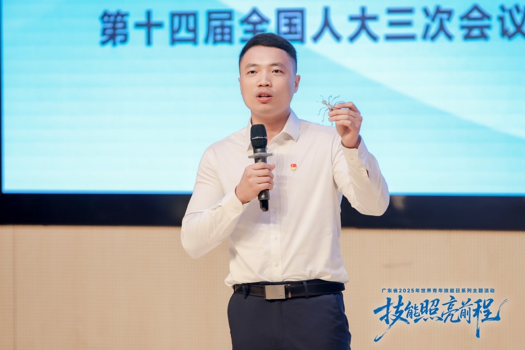 “大家看我手上这只‘蚂蚁’——今年3月,我带着它走进‘两会’,一下子成了记者们采访的焦点。”全国人大代表、世赛冠军杨登辉用一只“蚂蚁”开启了自己的分享。