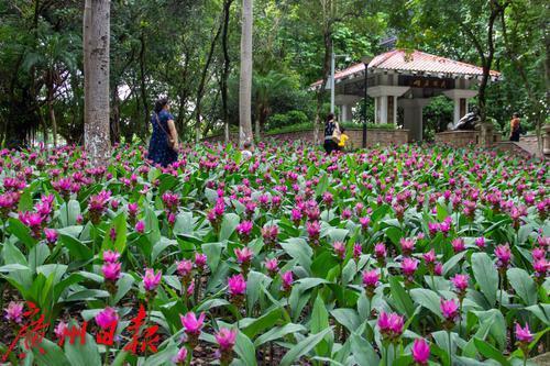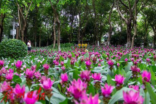 7月11日上午,天公作美,在炎炎夏日中送来了难得的阴凉天气。52种新优姜科观赏花卉争相斗艳,7万株姜荷花和3万株郁金组成了大片花海,8种非遗文化传承人现场与市民互动,白云区第三届姜荷花文化节暨全运倒计时100天趣味运动会在白云禁毒主题公园正式开幕。