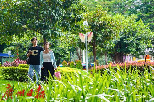 7月11日,广州是阴天间阵雨的天气,云层堆积遮挡了太阳,前几日因为台风“丹娜丝”的影响而持续的高温天气暂歇,市民得以感受久违的阴凉。不过据天气预报显示,随着台风残涡影响的减弱,降雨也持续不久,2天后温度又将继续升高。